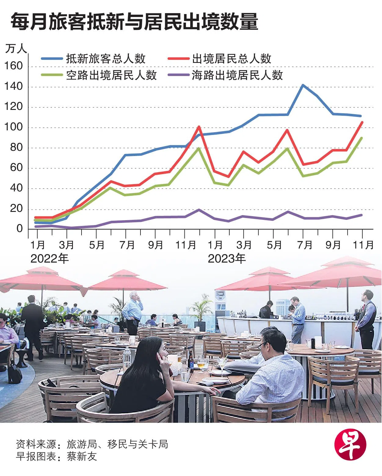 根据移民与关卡局数据,从海空两路出国旅行的居民人数在11月份已突破百万大关,其中空路出国者接近90万人,已高于2019年和2018年同月的人数。