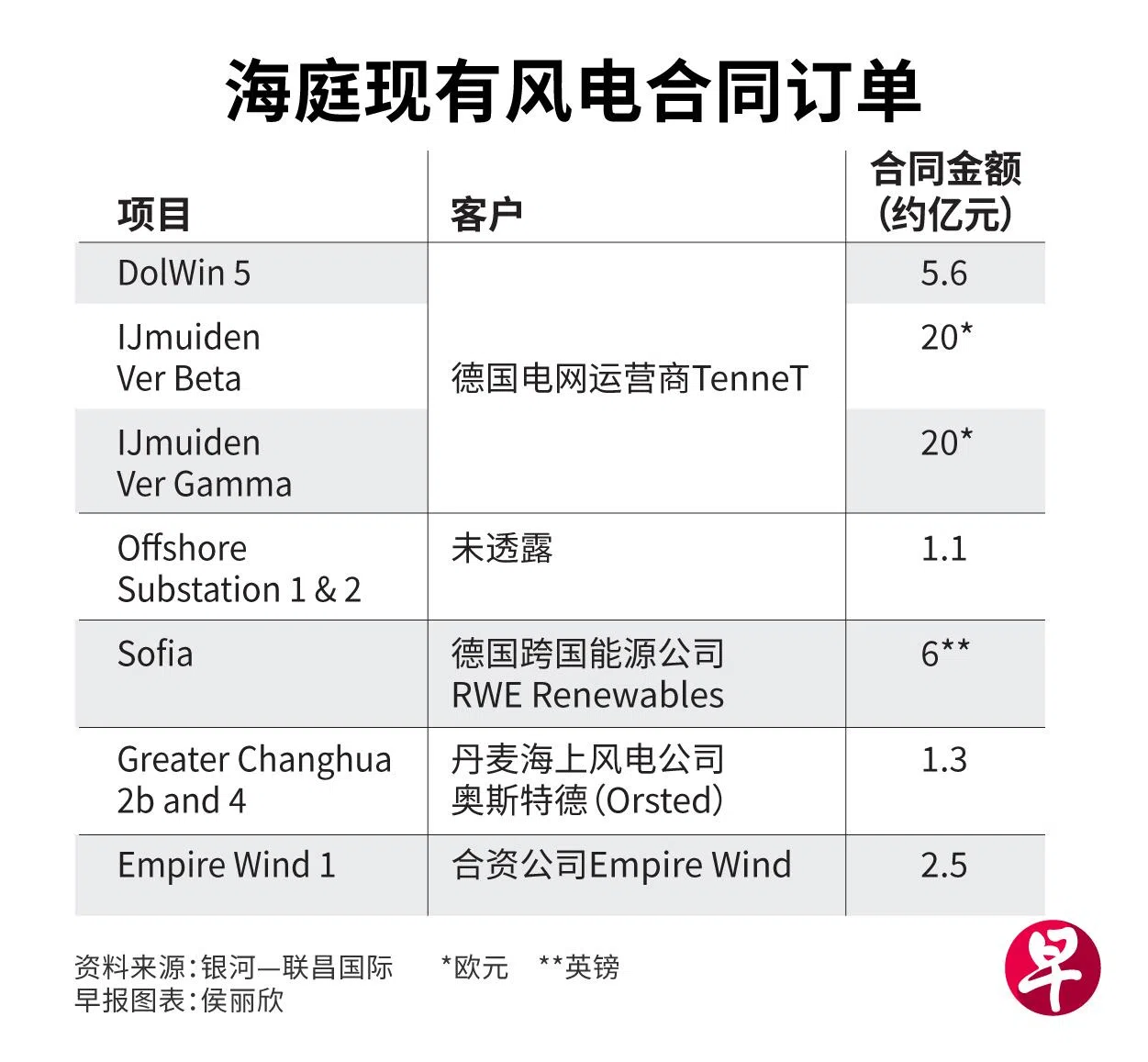 摩根士丹利(Morgan Stanley)指出,尽管海庭将因此获得一笔补偿金,但合同取消仍带来负面影响。不过,这对集团未来的海上风电项目订单影响不大。由于此前购电协议价较低加上供应链问题,美国的海上风电项目合约遇到阻力,但新合同已调高了购电协议价。