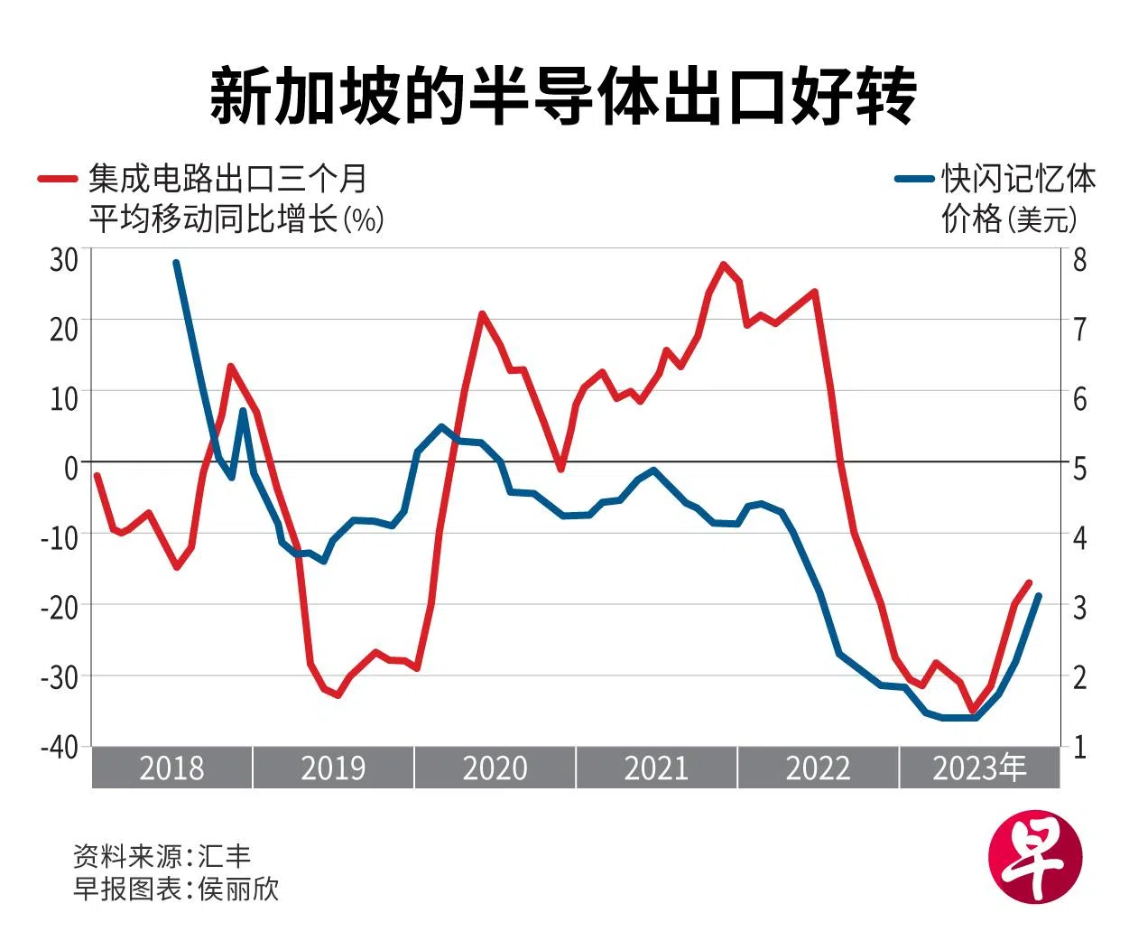 虽然近期半导体的蓬勃生产还没能带动新加坡的电子非石油国内出口走出衰退,但后者已触底,一部分原因是快闪记忆体价格回升。