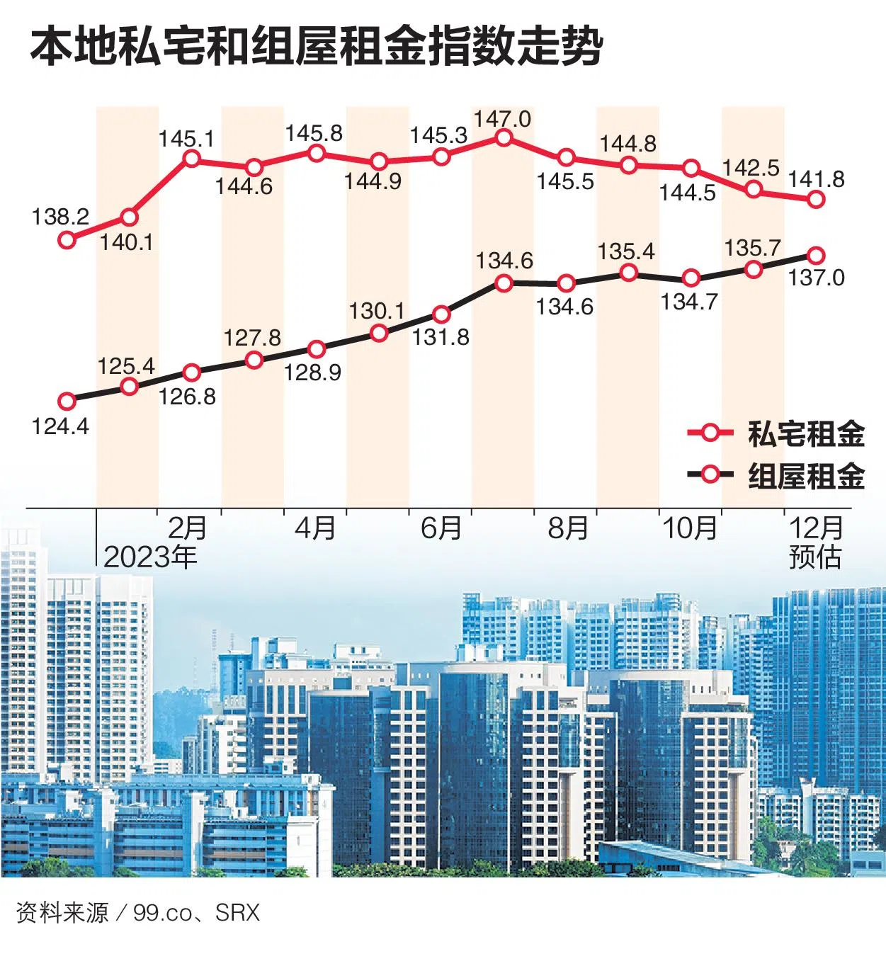大亨房地产网站(MOGUL.sg)首席研究官麦俊荣指出,新加坡私宅租金去年第四季已经开始下跌。在冠病疫情那三年期间,也就是从2020年中到2023年中,私宅租金因租赁住宅市场的供需不平衡而上升56%,麦俊荣认为私宅租金今年有足够的空间来回调。