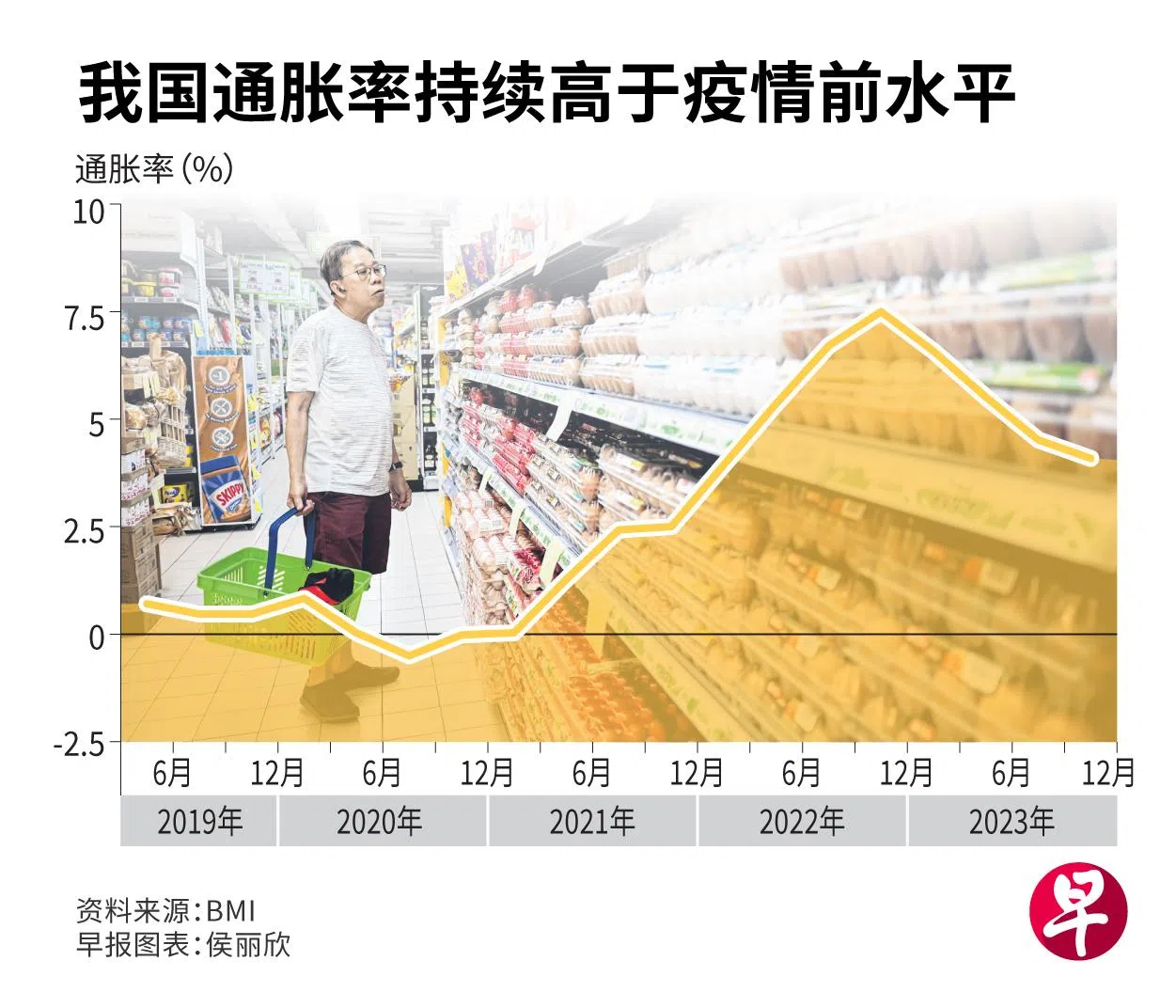 本地物价上涨势头有所放缓,整体通胀率从去年10月的4.7%,跌至11月的3.6%。尽管我国通胀压力放缓,但仍高于2015年至2019年疫情前的水平。在这期间,通胀率平均为0.1%。