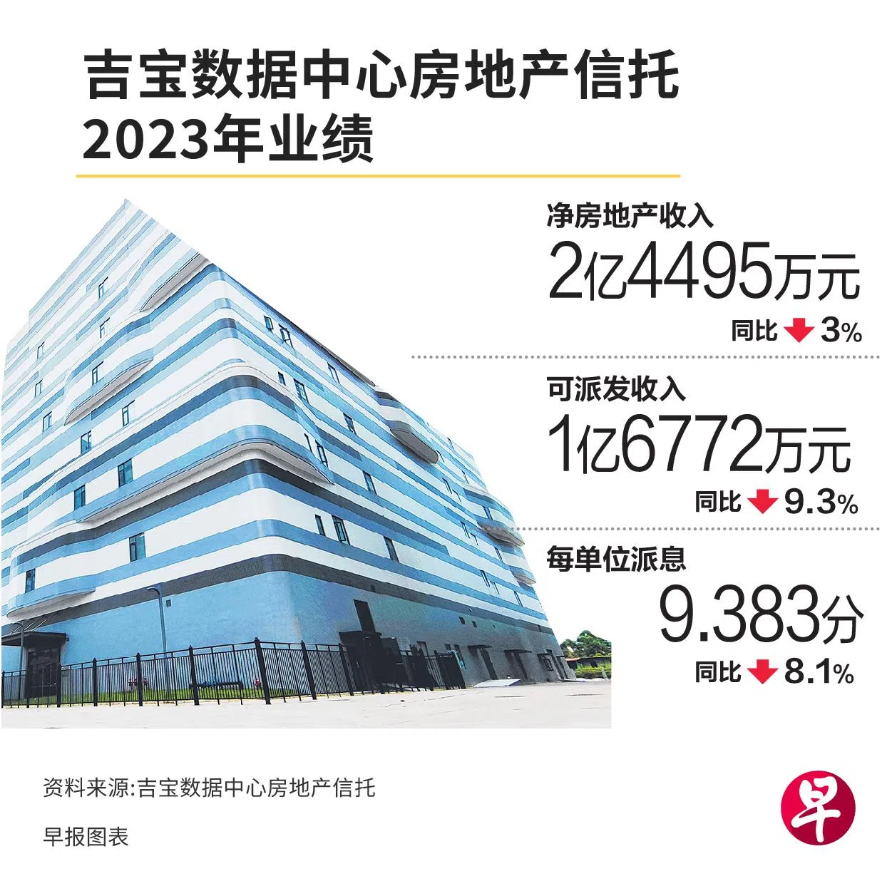吉宝数据中心房地产投资信托(Keppel DC REIT)截至去年底的下半年可派发收入减少18.5%,只达7641万元,每单位派息(DPU)同比也减少16.1%至4.332分,这主要是信托的融资成本和损失准备金增加所致。