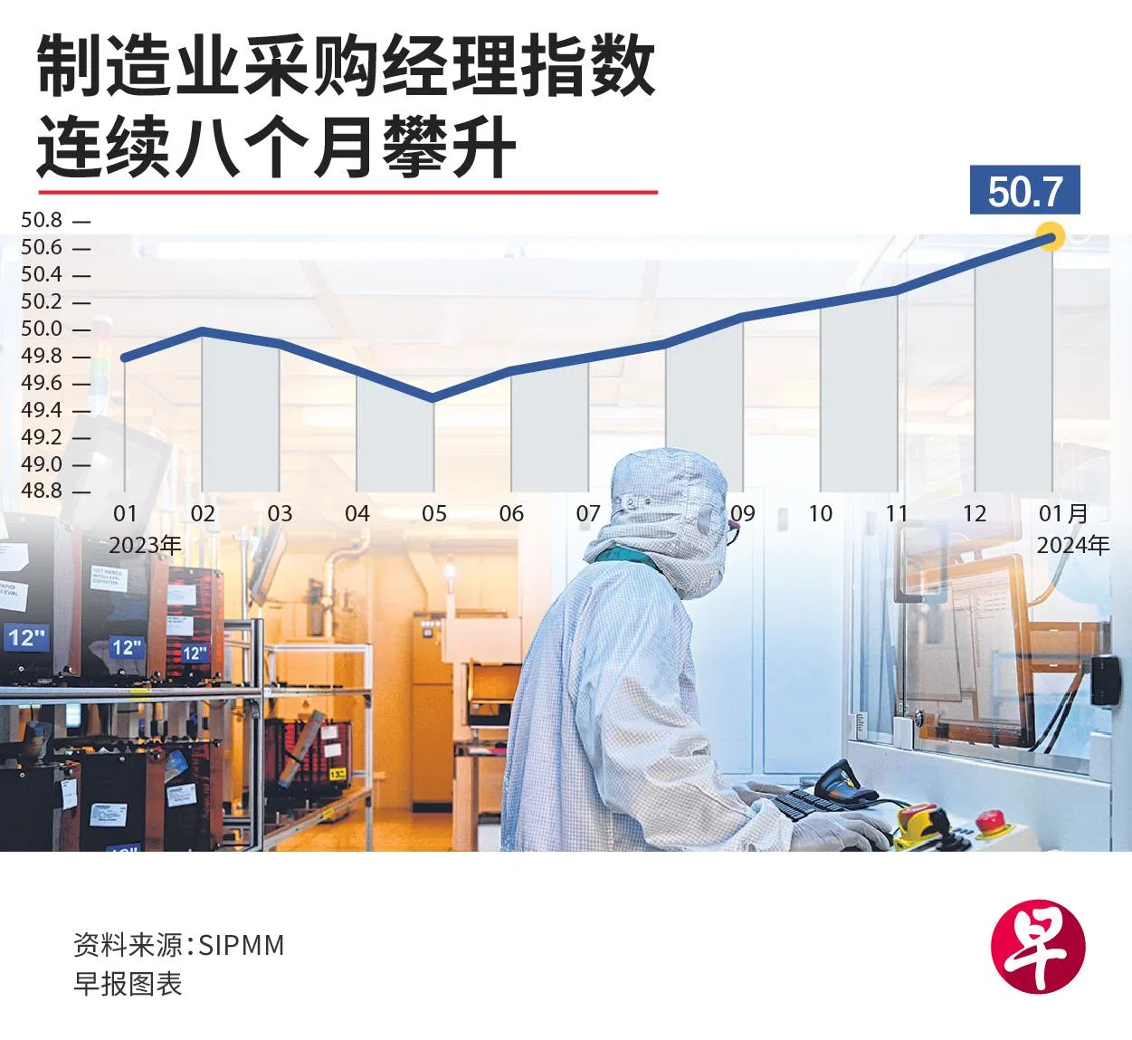 新加坡采购与物流管理学院(SIPMM)星期五(2月2日)发布的最新数据显示,我国1月制造业采购经理指数(PMI)从去年12月的50.5,上升0.2至50.7。这是制造业PMI自2021年12月以来的最好表现。