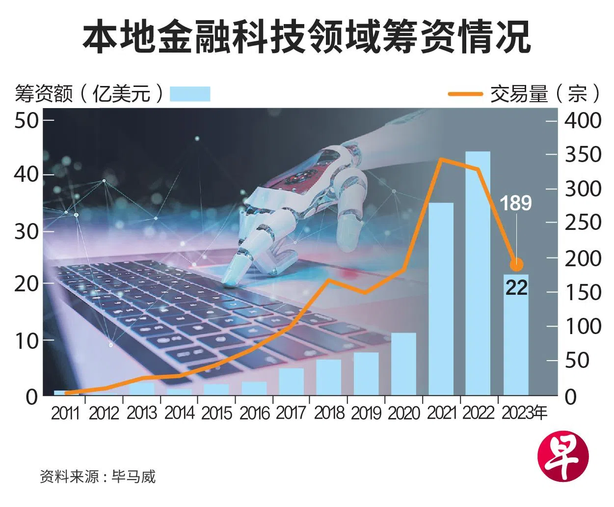 2023年是本地金融科技领域自2020年以来,投资表现最差的一年,这个领域全年只有183宗交易,仅筹集11亿3000万美元。报告认为,投资领域去年表现不佳,主要是地缘政治冲突加剧、利率处于高水平,以及区域脱售环境低迷,导致投资者采取谨慎姿态,倾向保留手中现金储备。