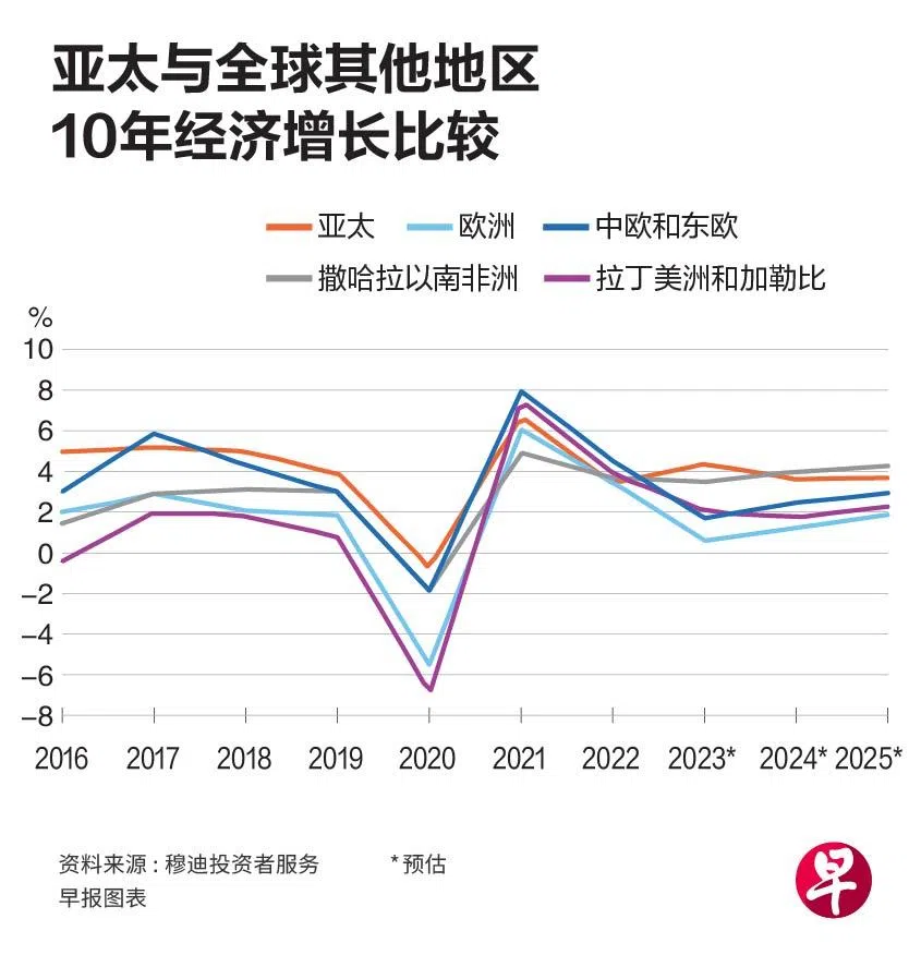 整体而言,报告认为,即使今年亚太经济增长放缓,本地区增速仍将快于全球大多数地区。