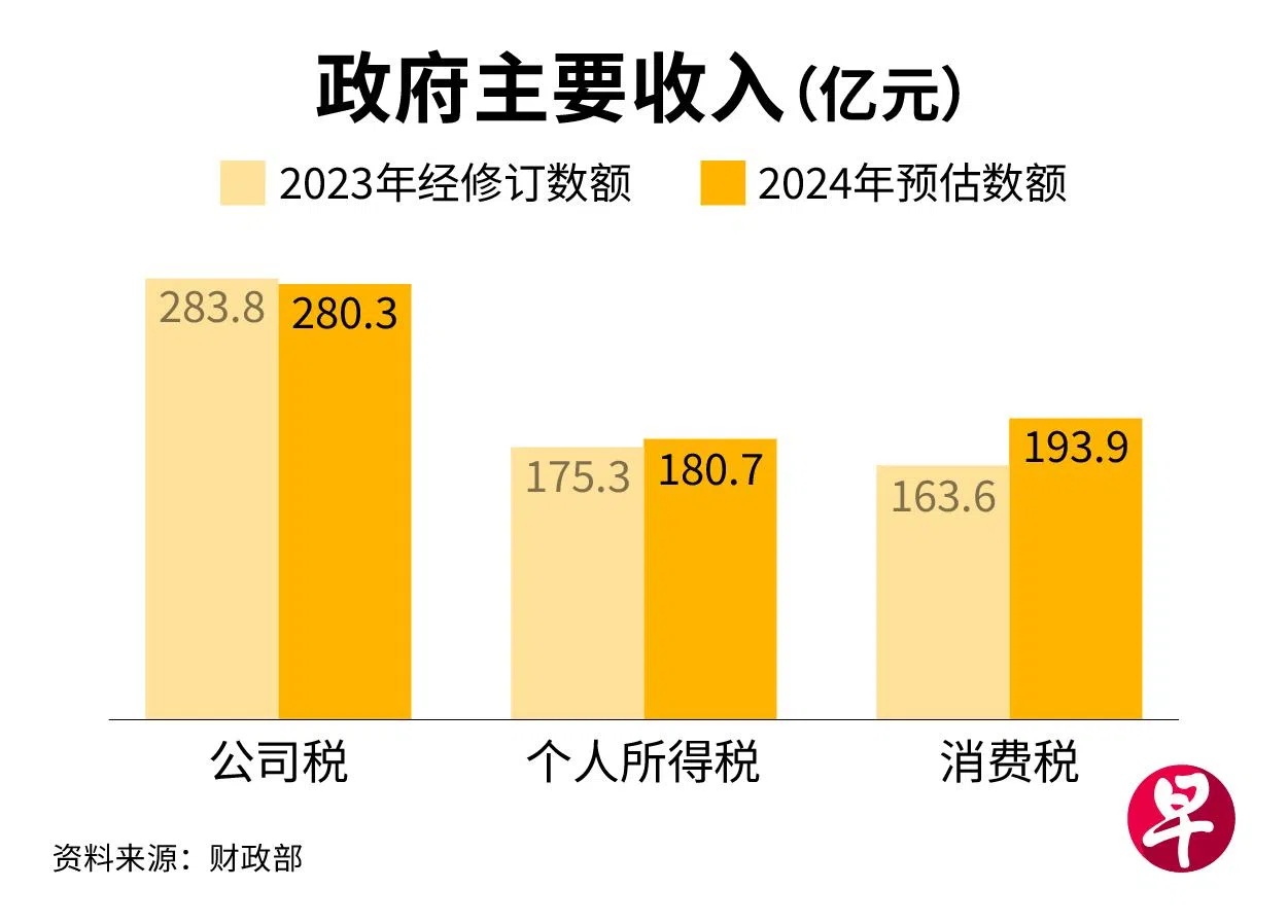 其中,随着消费税今年1月1日上调一个百分点至9%,2024财年的消费税收入预计增长30亿元(18.5%)至194亿元,约占我国国内生产总值的2.7%。