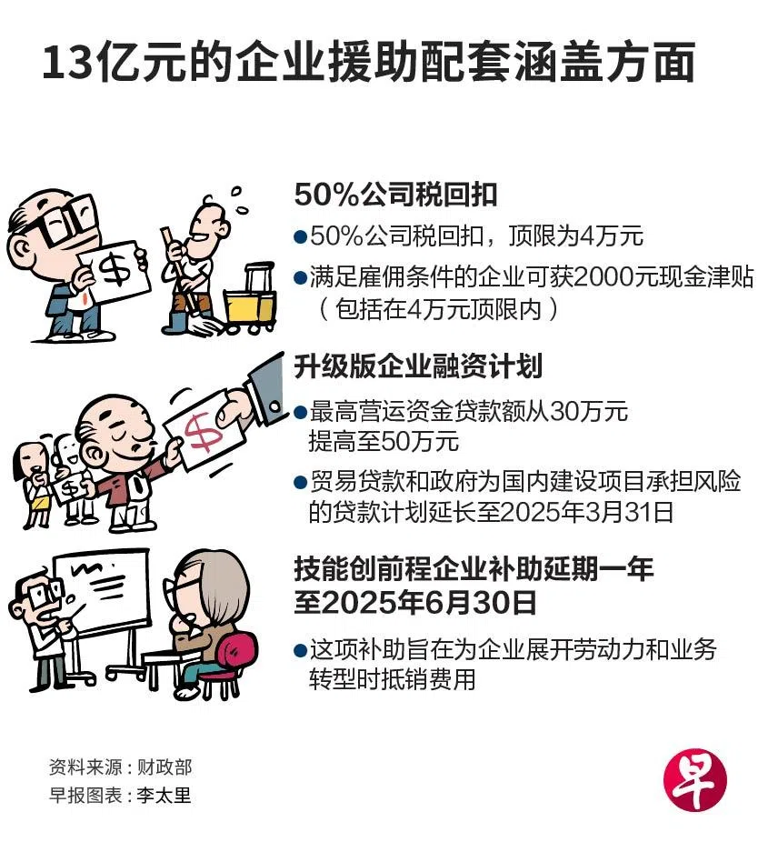 在通货膨胀高企的背景下,企业面对的工资账单、租金和水电费等也有所增加。为帮助企业管理不断上升的成本,政府推出13亿元的企业援助配套(Enterprise Support Package),其中包括50%的公司税回扣。