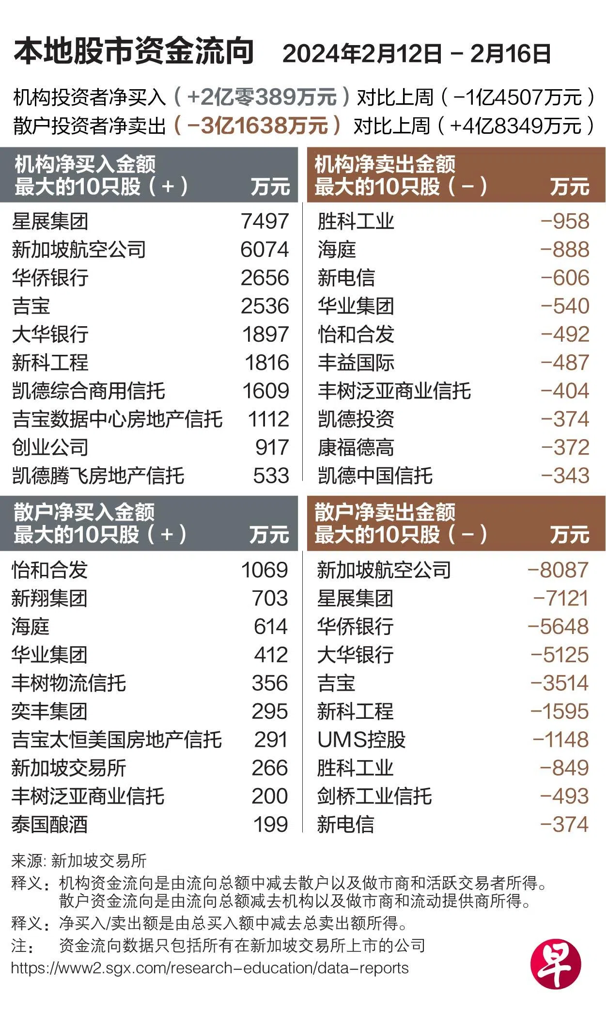 市场资金流向方面,机构投资者在2月12日至16日之间净买入2亿零389万元,而散户则净卖出3亿1638万元,比之前的一周大幅增加4亿8349万元。