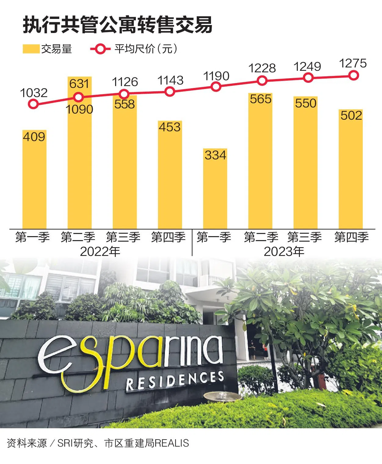 执行共管公寓转售价持续升高,去年第四季的平均交易价同比增长11.5%,少数单位尺价接近大众化新私宅价格。