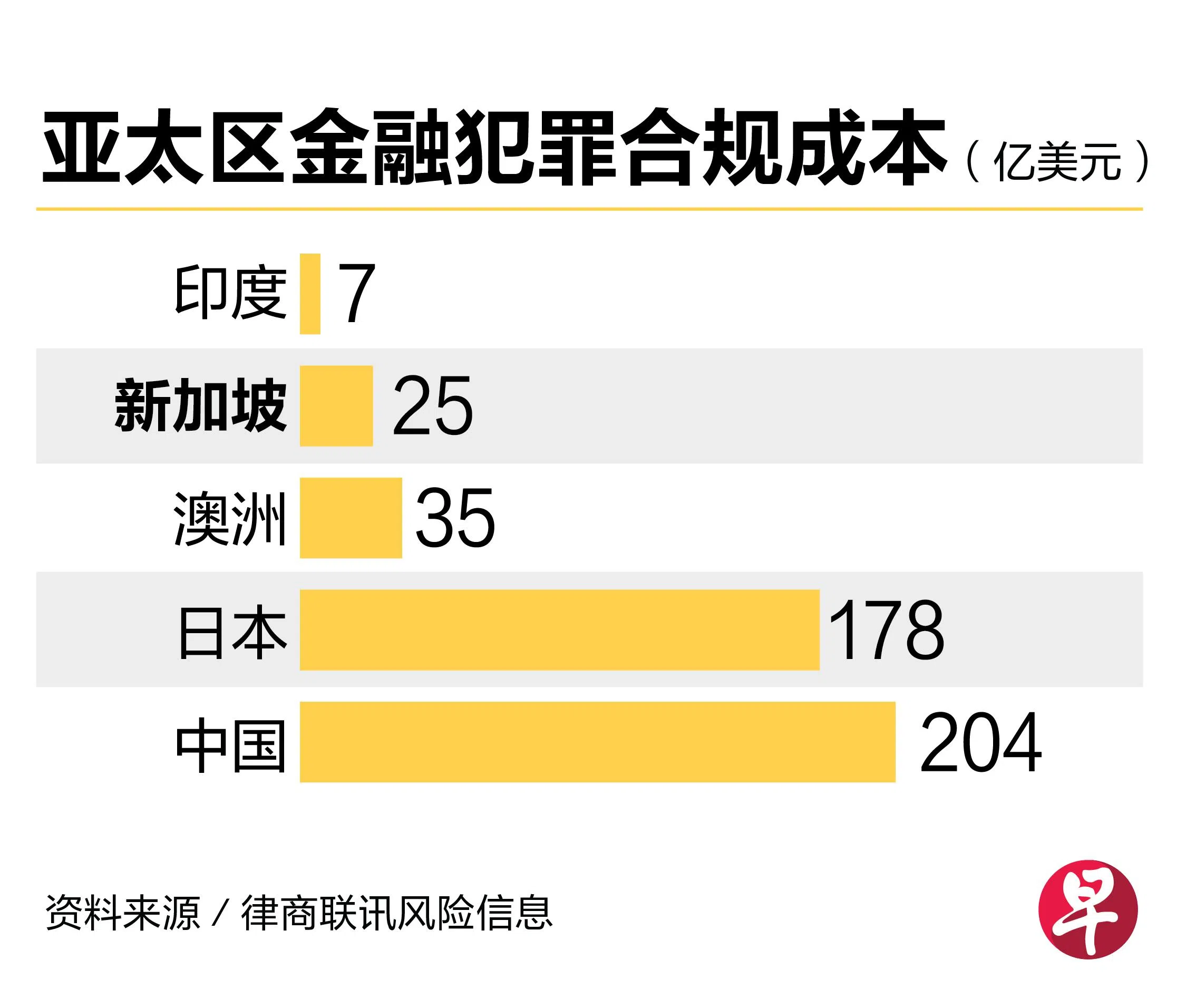 五个国家当中,中国的金融犯罪合规成本最高,达204亿美元。其次是日本和澳洲,分别为178亿美元和35亿美元。