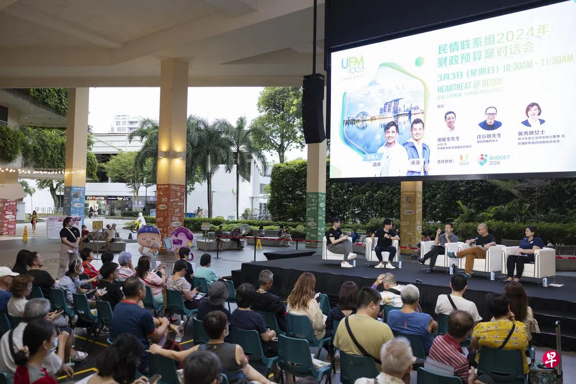 为了收集国人的反馈,政府反馈与公民参与机构民情联系组(REACH)于3月3日,在勿洛心动大厦(Heartbeat@Bedok)举行了一场“民情联系组2024年财政预算案对话会”。不同年龄层的出席者在会上发表了看法和提出疑问,关注的课题包括技能创前程、应对生活费和医药费上涨的措施、公积金退休户头等等。