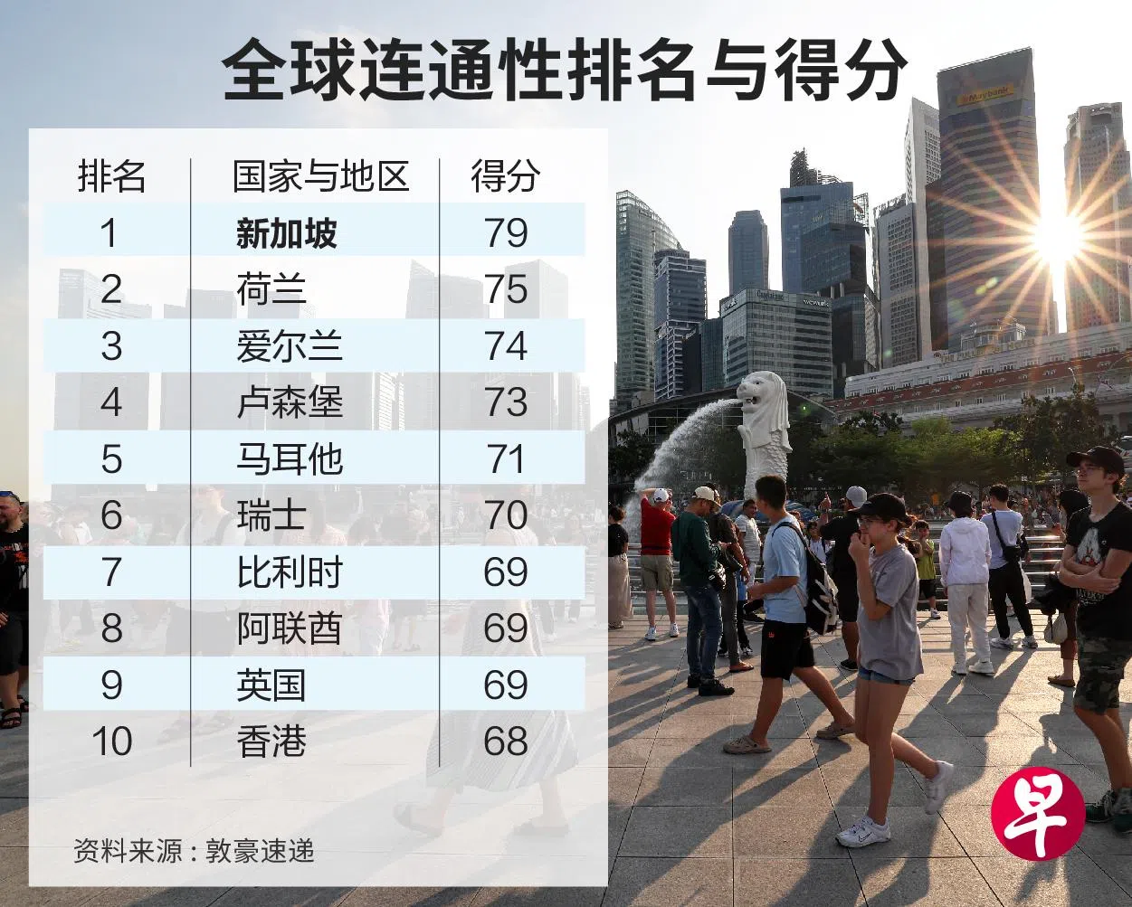 一项调查显示,新加坡在全球贸易、资本、资讯和人口流动等方面皆名列前茅,全球连通性指数排名第一,其次是荷兰和爱尔兰。