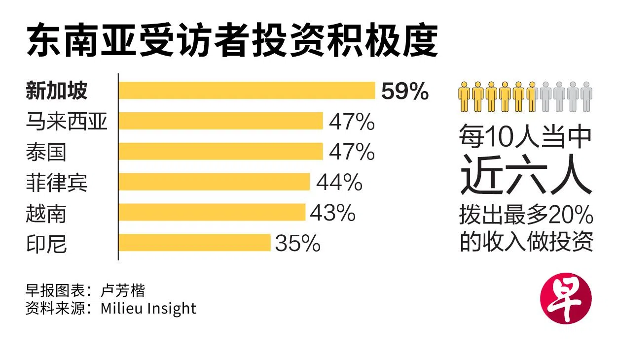 一项调查发现,新加坡人在投资方面比其他东南亚国家人士更积极,最主要投资领域是股票、定期存款和债券。