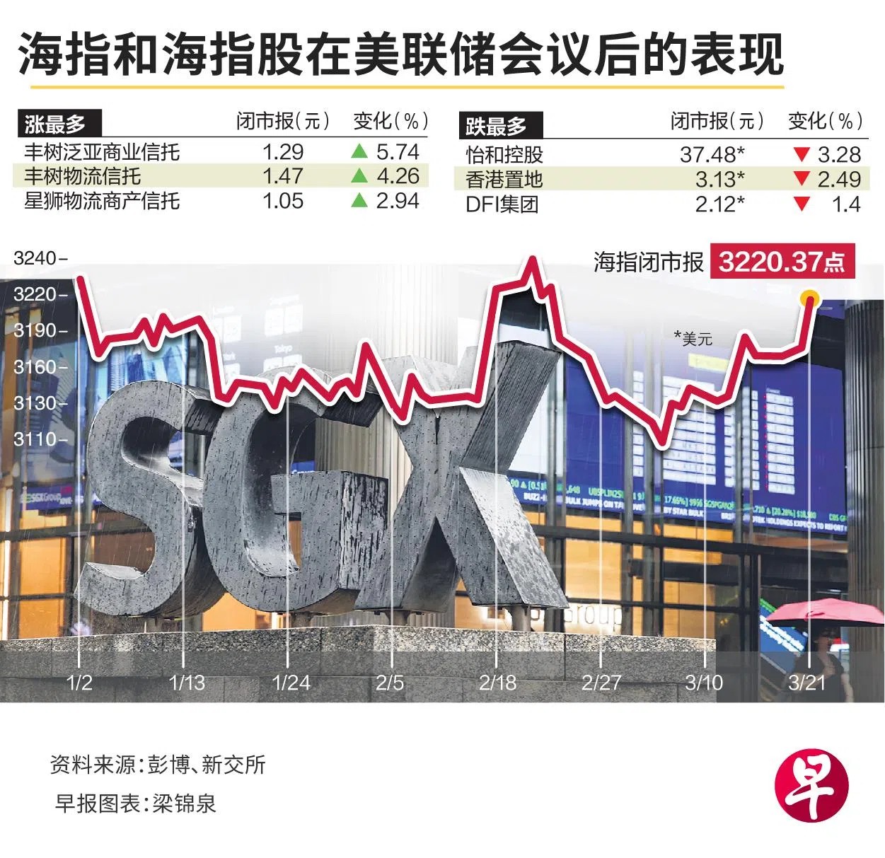 研究预测,新加坡海峡时报指数有望在数周内站上3300点。新加坡房地产投资信托(S-REIT)强劲反弹,是推动海指迅速攀升的动力之一。