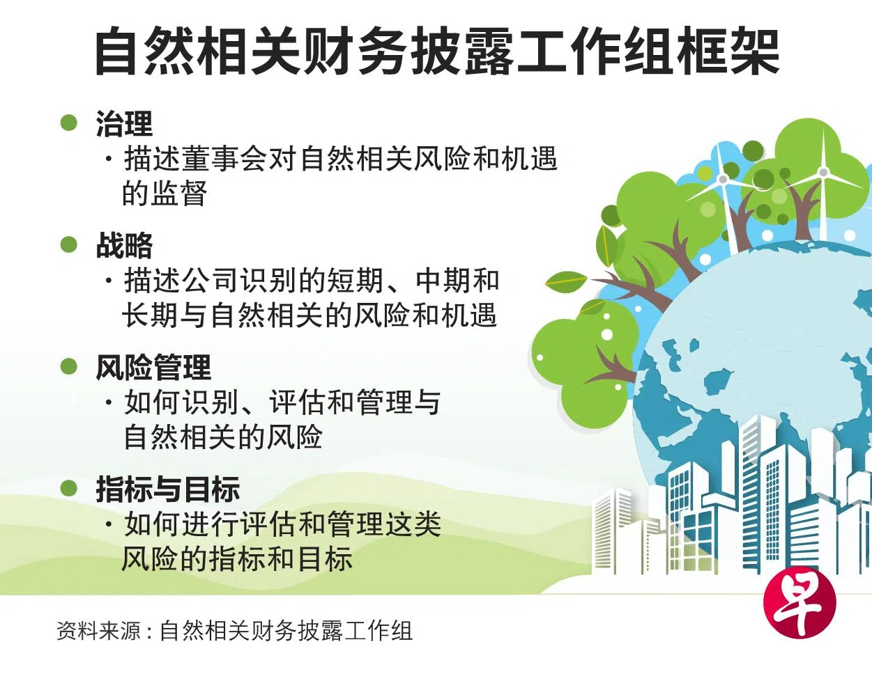 全球46个国家和地区的320家公司机构在较早前承诺,会根据TNFD框架发布与自然相关的财务信息报告。