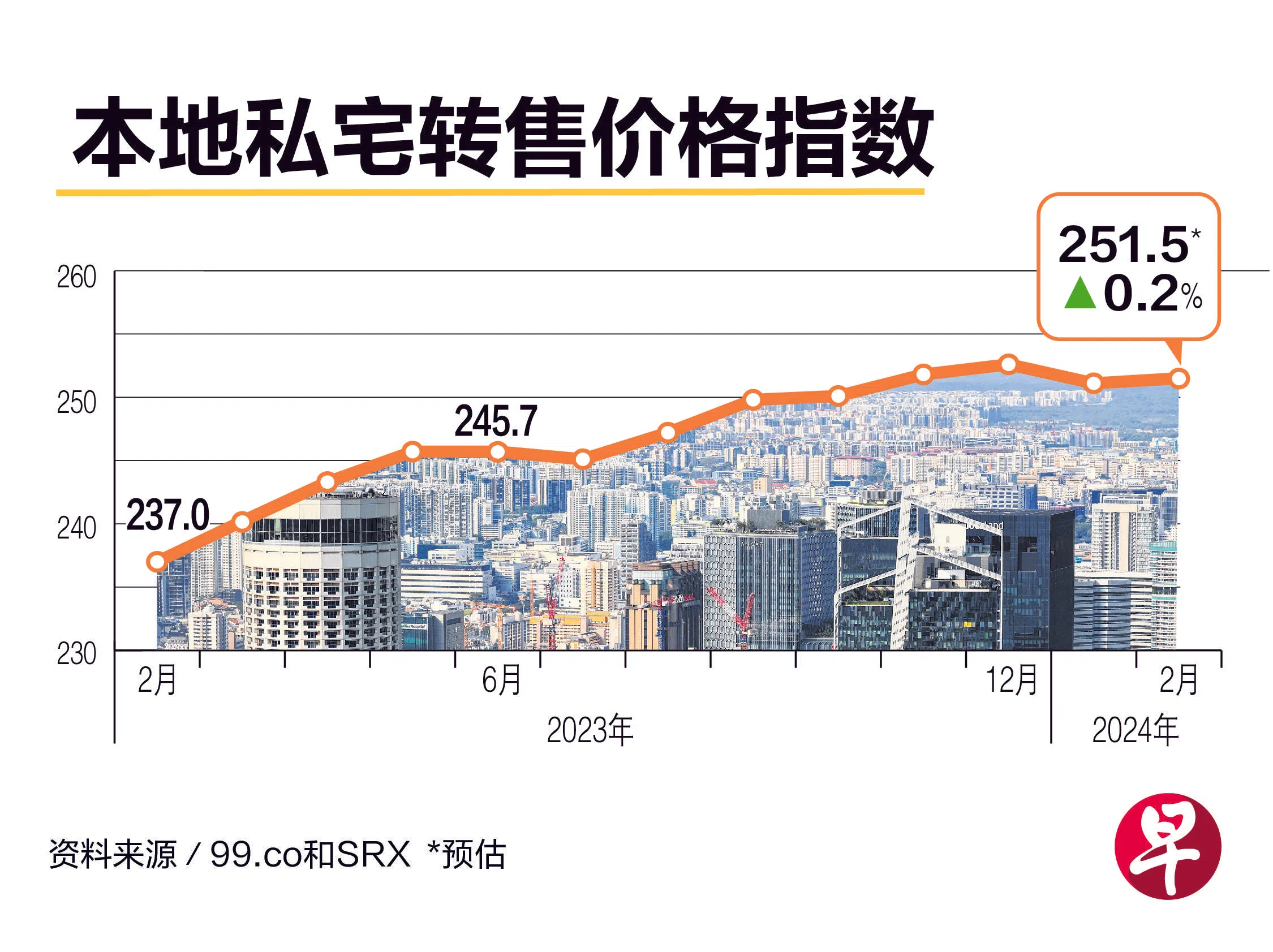 本地转售私宅价格由跌转升,在今年2月稍微环比上升0.2%,交易量也环比增长1.2%。分析师预测,接下来转售市场会恢复活跃。