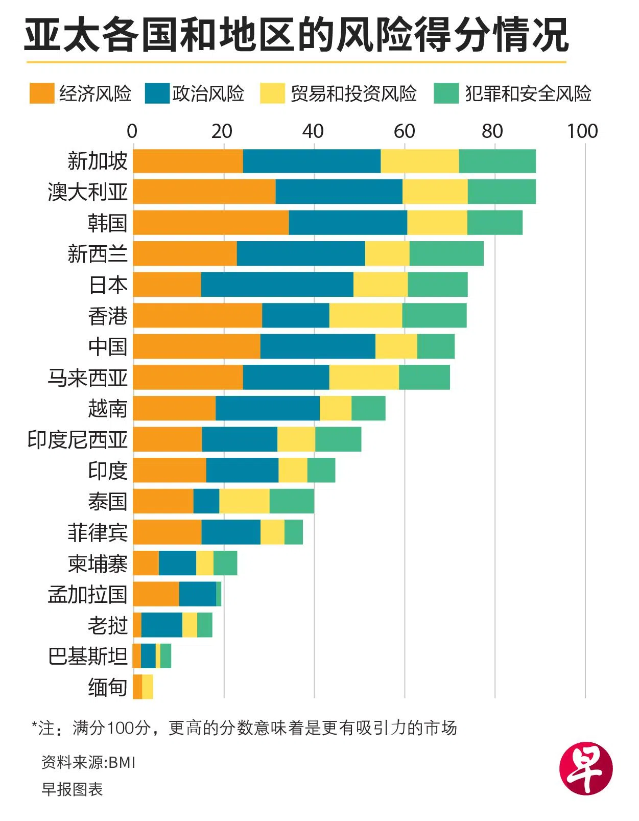 较为发达的市场政治环境稳定,运营风险低,从而潜在的投资损失也较低,但泰国、印度尼西亚、中国和印度等市场却在增长回报方面潜力更大。