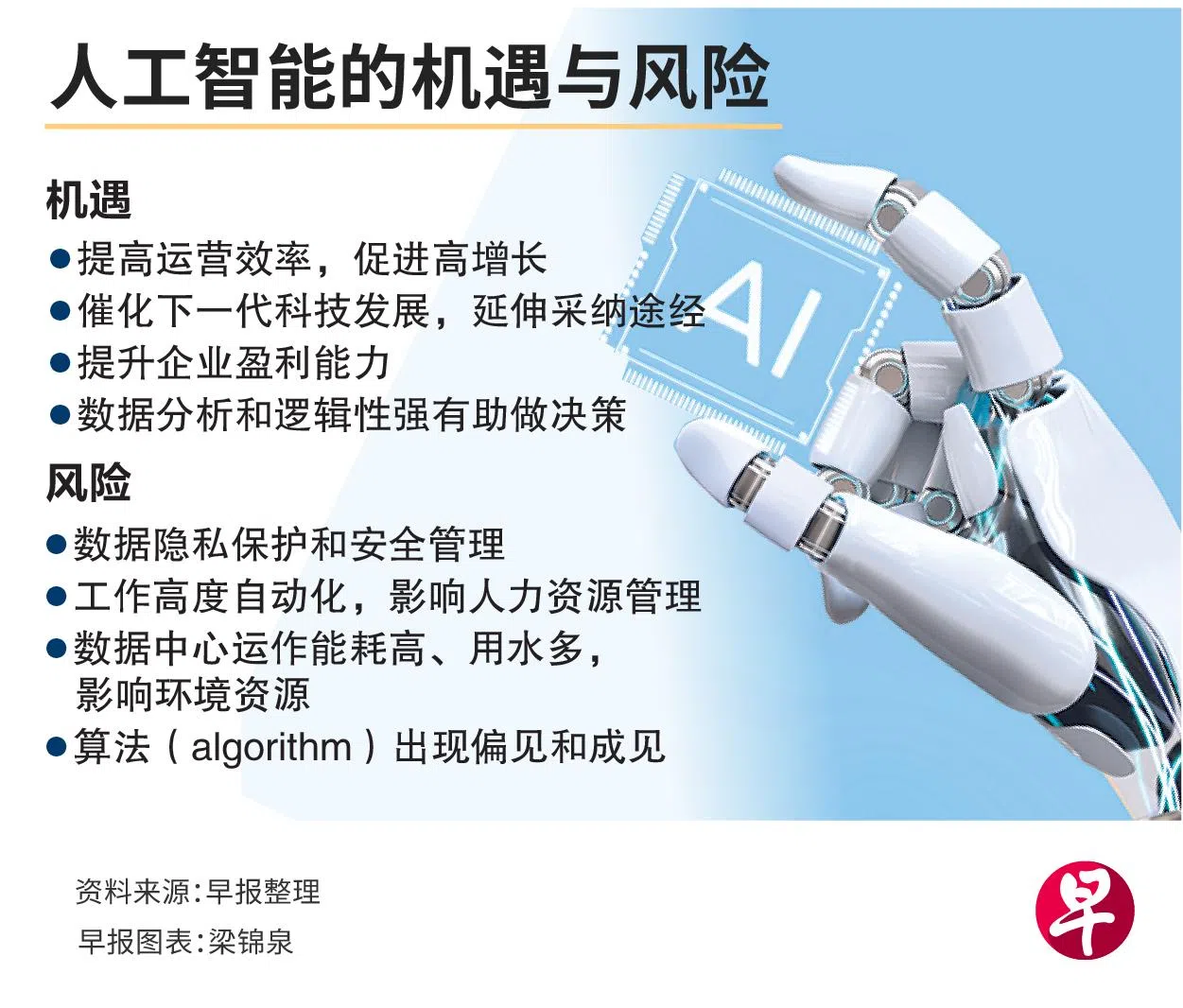 他指出,投资以人工智能为重点的企业确实会带来一些ESG风险。这包括人力资源管理与发展、确保收集到的数据能符合保护和管理监管标准,以及生产和操作人工智能系统的高碳排放等。