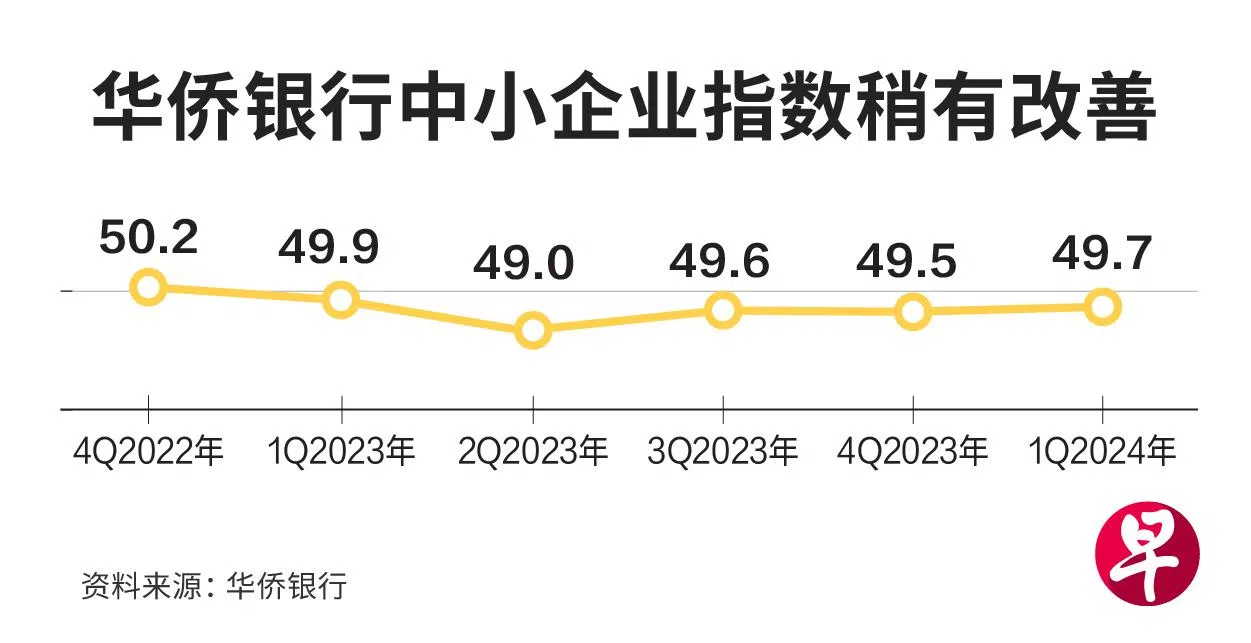 根据华侨银行星期二(4月16日)发布的《2024年第一季中小企业指数》,第一季的整体中小企业指数是49.7,比去年第四季的49.5稍有改善,但仍是连续五个季度处在萎缩状态。