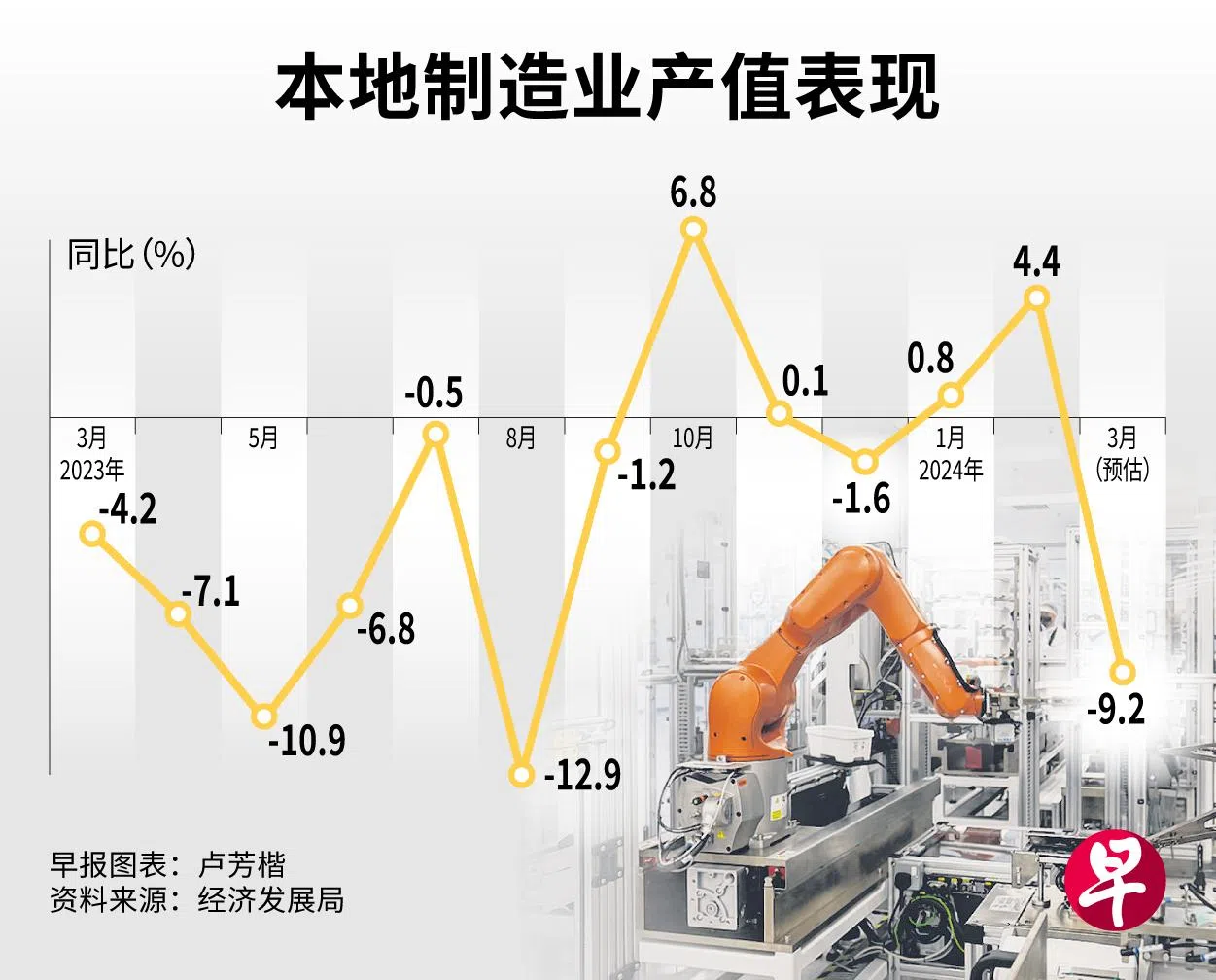 经济师认为,由于制造业表现让人失望,第一季经济增长预测被调低。但市场对接下来几季制造业尤其是电子业的复苏前景仍然乐观,3月的下滑未影响对全年经济前景的判断。