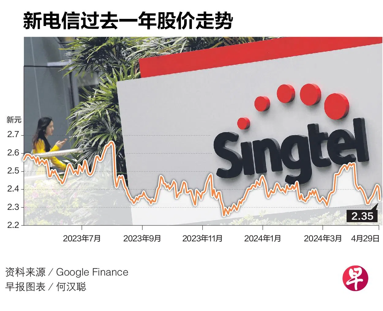 消息传出后,新电信股价在星期一(4月29日)一度下跌超过3%,闭市时报2.35元,跌2.49%。它也是星期一交易总额最高的股票,约9560万股转手,交易总额为2亿2426万元。