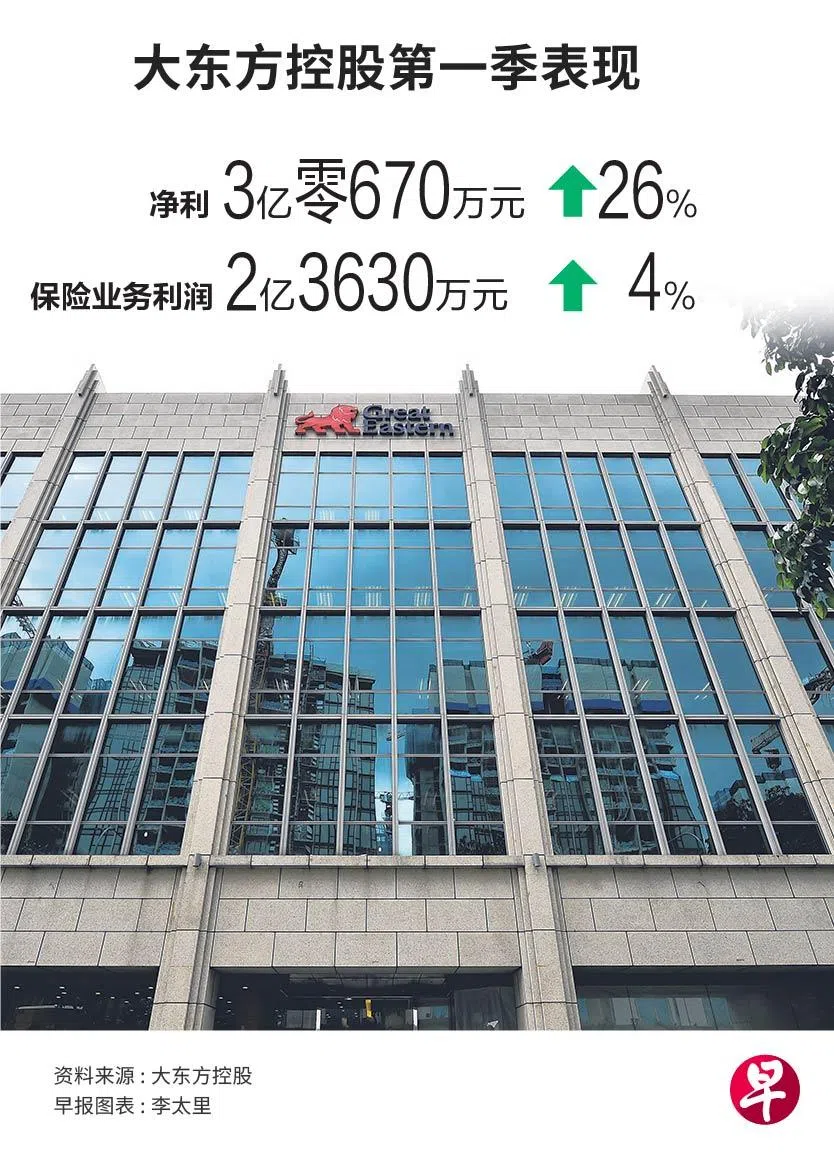 保险业务与股东基金增长推高大东方控股(Great Eastern Holdings)今年第一季净利同比增长26%至3亿零670万元。