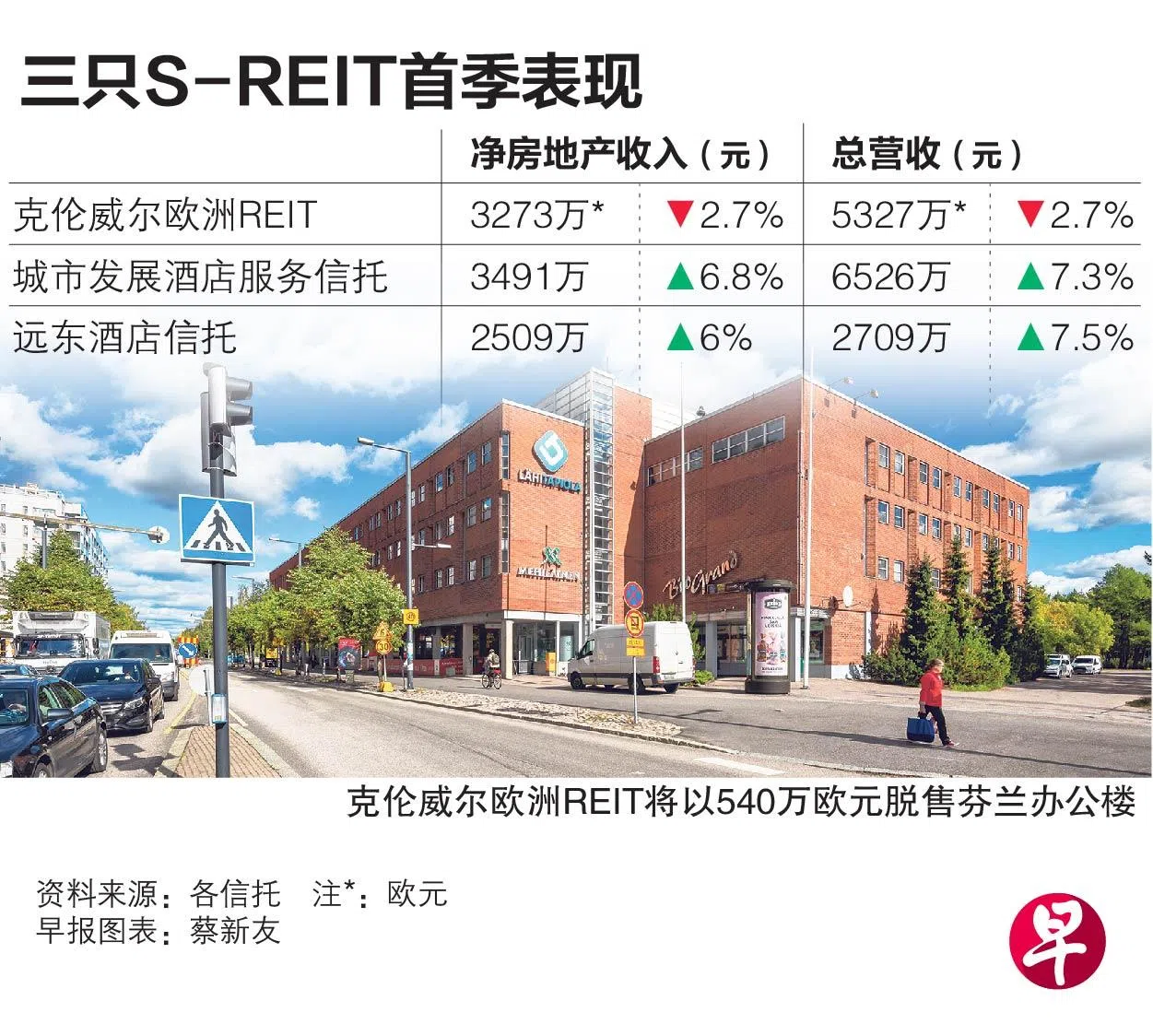 报告显示,信托首季总营收同比减少2.7%至5327万欧元(约7766万新元),净房地产收入则同比跌2.7%至3273万欧元。