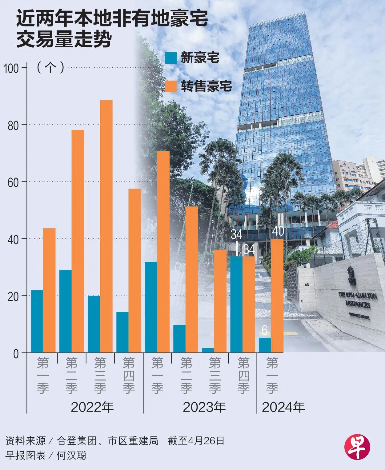 因地缘政治局势紧张加剧,更多超高净值人士视新加坡为资产避风港,推动新加坡非有地豪宅第一季转售交易量环比上涨17.6%,至40个单位。