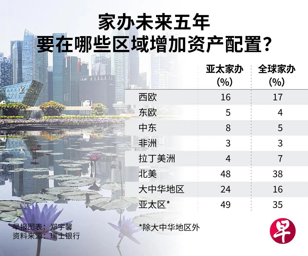 根据瑞士银行(UBS)星期三(5月22日)发布的《2024全球家族办公室报告》,49%的亚太家办计划在未来五年增加对亚太区(除大中华地区外)的资产配置,第二受欢迎的市场是北美,比率为48%。
