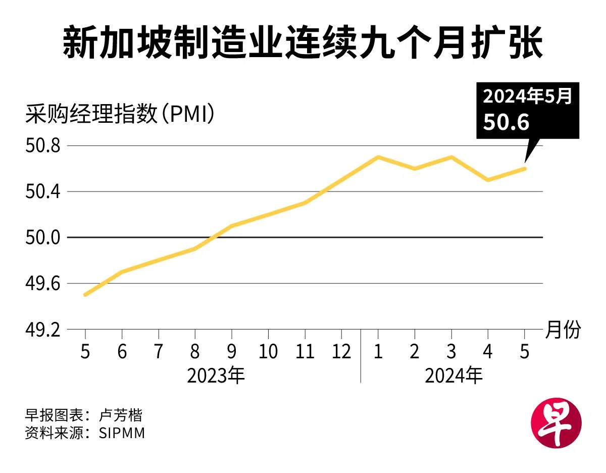 华侨银行首席经济师林秀心说,新订单、新出口、产出和投入品采购加速扩张,支撑本地制造业的情绪,而进口和未来业务指数在5月份也改善,分别连续七个和11个月扩张。
