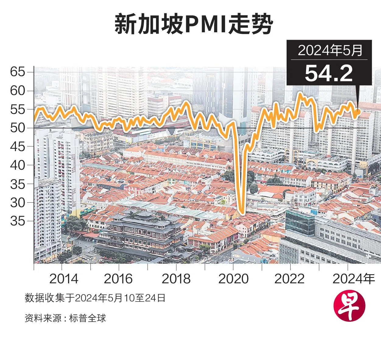 根据标普全球(S&P Global)星期三(6月5日)发布的最新调查报告,经季节性调整后的5月份新加坡采购经理指数(PMI),从4月份的52.6回升至54.2,这显示新加坡私人领域连续15个月扩张,且扩张速度高于长期趋势。