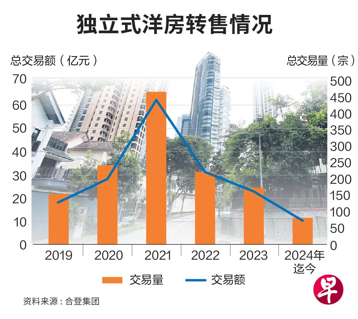 根据合登集团(Huttons)整理的数据,截至6月7日,今年共有79宗独立式洋房转售交易,总交易额为10亿3000万元。这远不如去年同期有86宗交易,总交易额为12亿4000万元的情况。