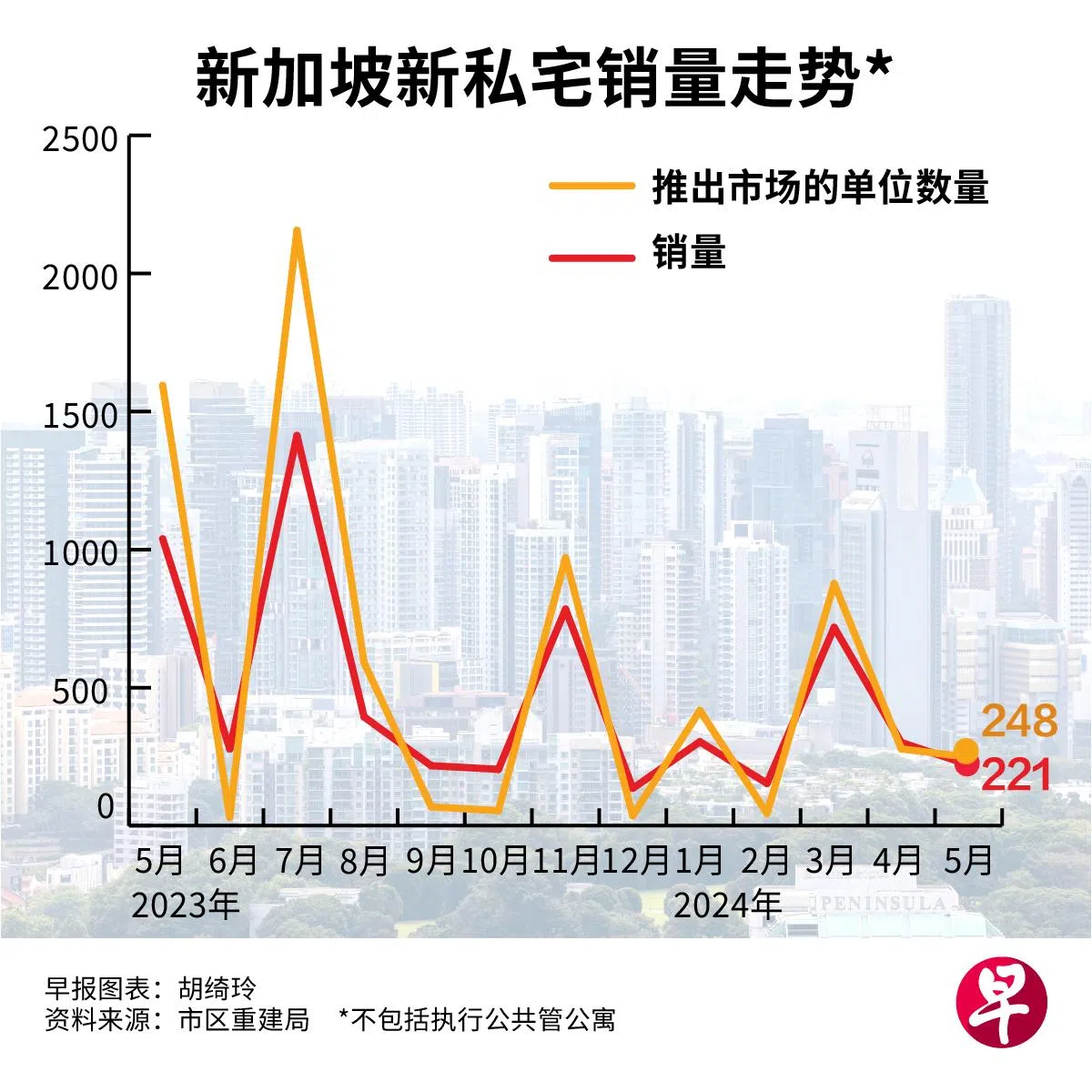 由于缺乏新私宅项目登场,使到今年5月份的新私宅销量连续第二个月下滑,同比大跌78.7%至221个单位。