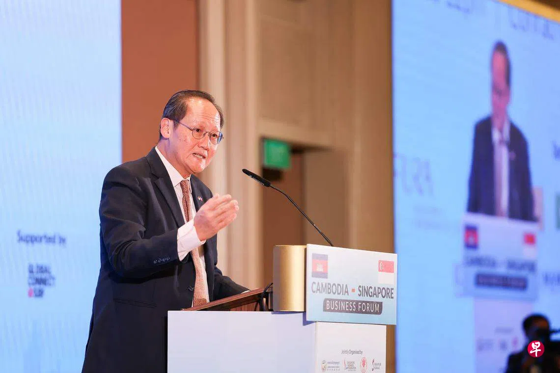 柬埔寨—新加坡商业论坛由新加坡工商总会(SBF)和柬埔寨商会联合举行,吸引约300人参加,包括两国的商业领袖及政府官员。