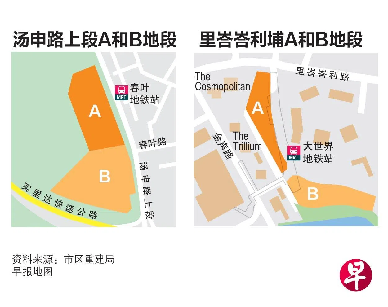 其中一幅位于汤申路上段A地段旁的B地段,较早前由国浩房地产(GuocoLand)与丰隆控股(Hong Leong Holdings)旗下的Intrepid Investments联手标得,得标价为7亿7956万元,相当于容积率每平方英尺905元。这幅地段将建造多达940个住宅单位。