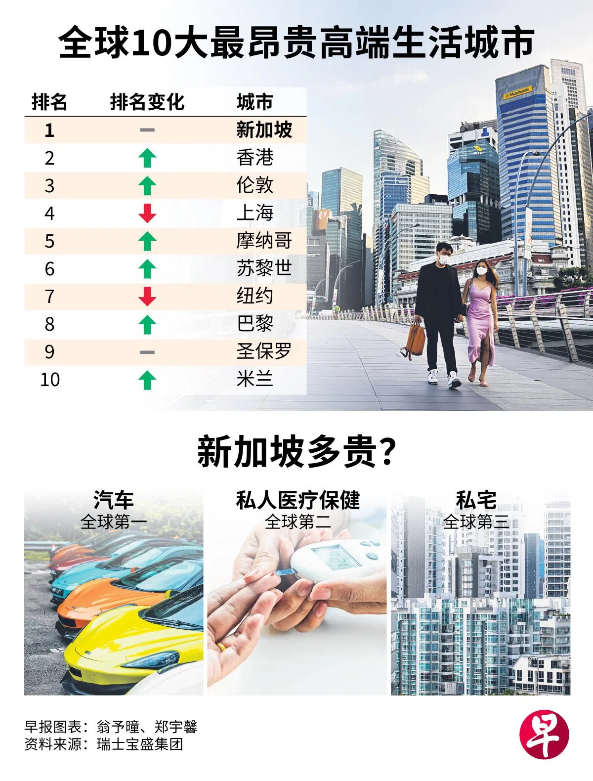 此外,新加坡高档餐饮和豪华旅游费用,分别是全球第四和第五昂贵的城市。