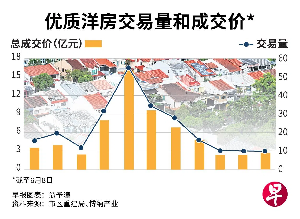 优质洋房市场出现复苏迹象,截至6月8日的市区重建局房地产资讯系统(URA Realis)的数据显示,今年来转手的九间优质洋房总交易额达2亿1900万元。去年下半年同样有九笔优质洋房交易,但总交易额较低,达2亿零200万元。