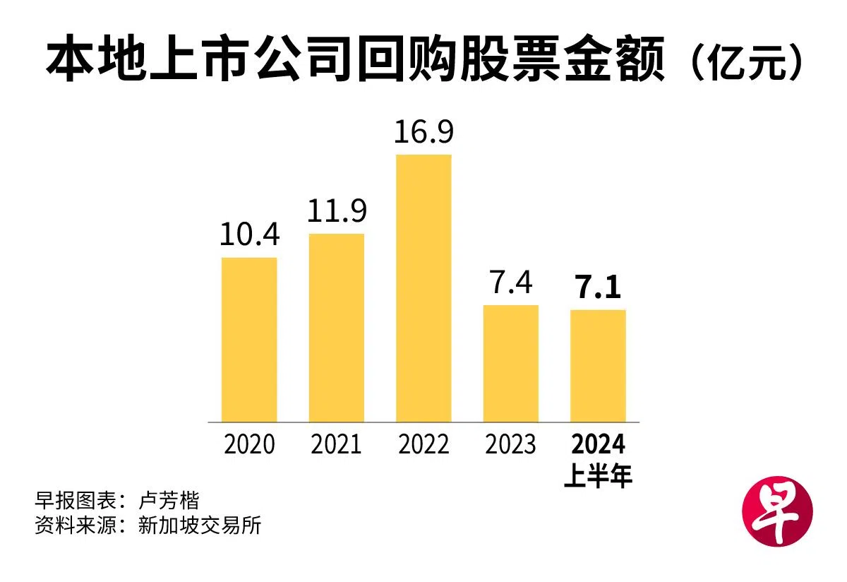 今年上半年,将近70家在新加坡股票交易所上市的公司,一共从公开市场回购大约7亿1400万元的股票,比去年同期的3亿多元回购额增长一倍多,也几乎等于去年全年回购额。