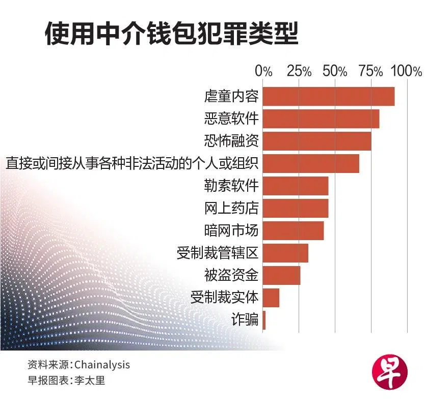 中介钱包在区块链洗钱过程是要角,通常占交易总值80%以上。