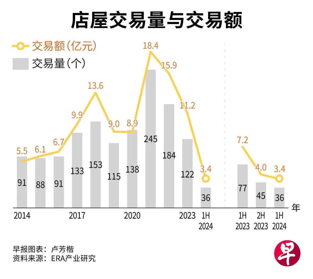 不过,市场人士认为,尽管店屋的交易值呈下跌趋势,有限的供应促使店屋的价格保持韧性,交易量也有望在降息之后回升。