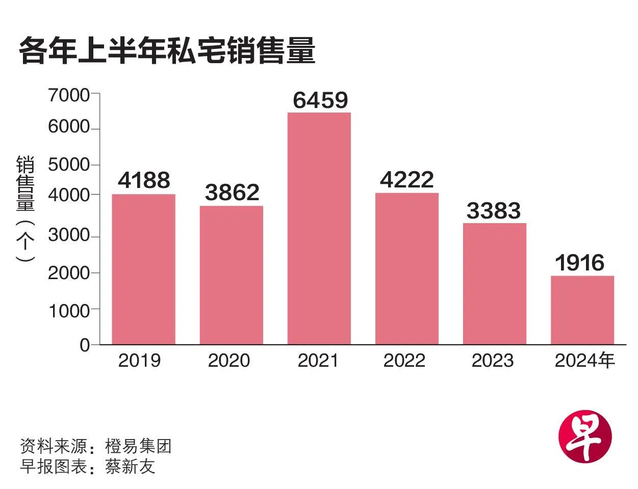 橙易集团(OrangeTee Group)首席研究与战略总监孙燕清说,今年上半年新私宅销量为1916个,较去年同期少了43.4%,而跟2022年上半年的4222个单位相比,更是显著减少。