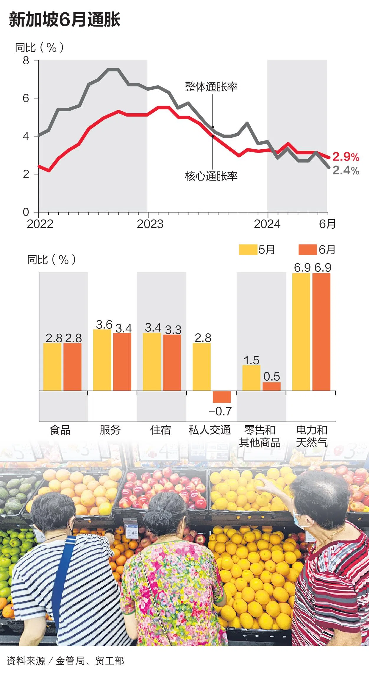 另一方面,新加坡统计局同日文告显示,本地家庭上半年整体通胀率为2.9%,低于去年下半年的4.1%。其中,高收入家庭面对通胀率较低,为2.7%,低收入和中等收入家庭面对的通胀率分别为3.1%和2.9%。