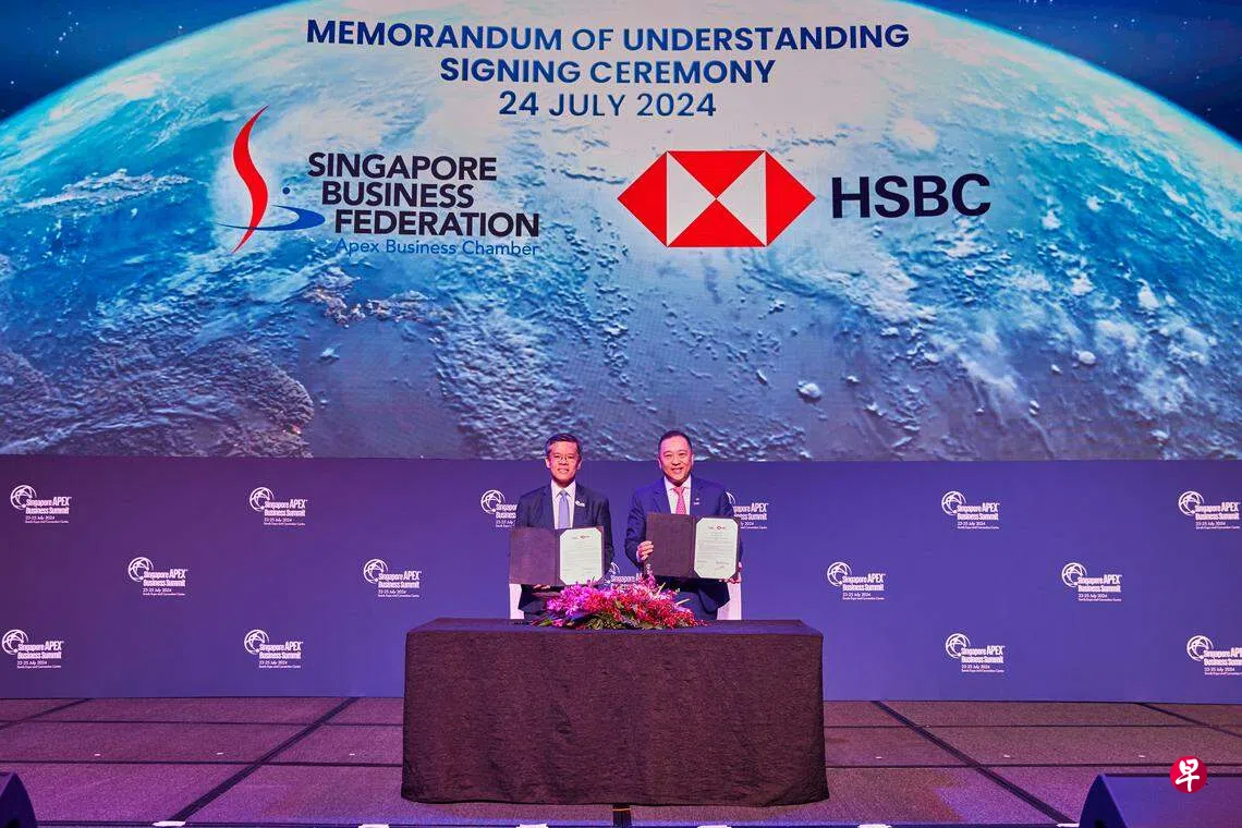 在当日的峰会上,汇丰银行(HSBC)也与新加坡工商联合总会(SBF)共同签署了一份谅解备忘录(MOU),旨从促进国际化、知识共享、本地与全球连接这三个方面来帮助本地企业抓住大湾区、印度和中东等主要贸易走廊的新增长机遇。作为第一家与工商总会签署MOU的全球性银行,HSBC还推出了《亚细安及其他地区商业指南》,对亚细安六大市场及其主要贸易走廊进行了深入分析。