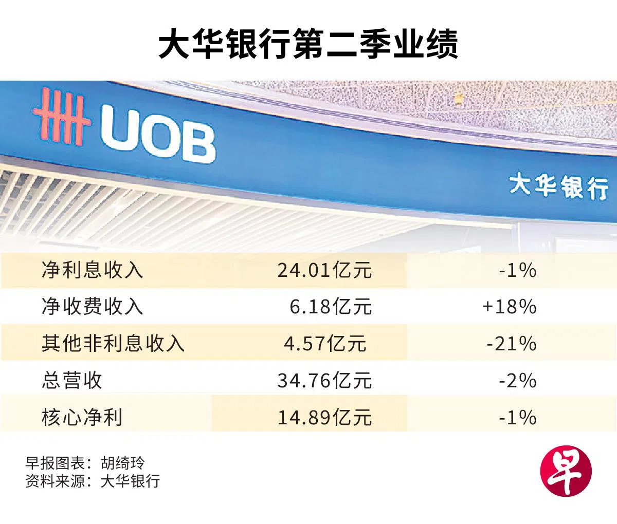 尽管净利息收入略有下滑,但在收费收入强劲增长推动下,大华银行今年第二季净利同比增加1%至14亿2500万元。