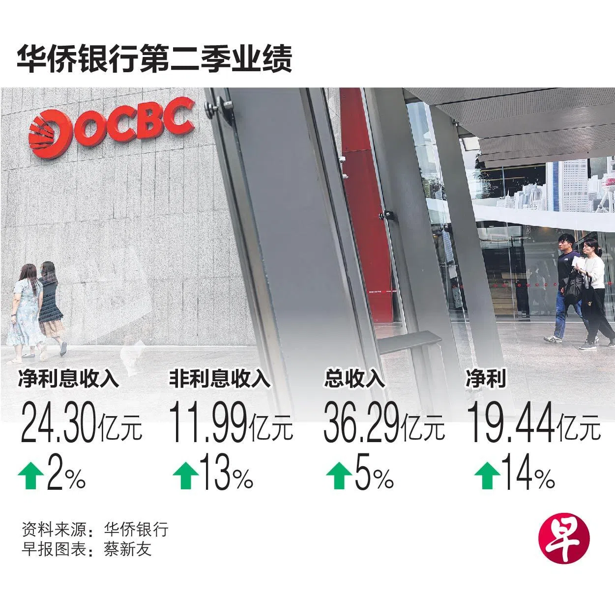 由于收入增长以及准备金减少,华侨银行(OCBC)第二季净利同比增长14%至19亿4400万元,高于市场预期。