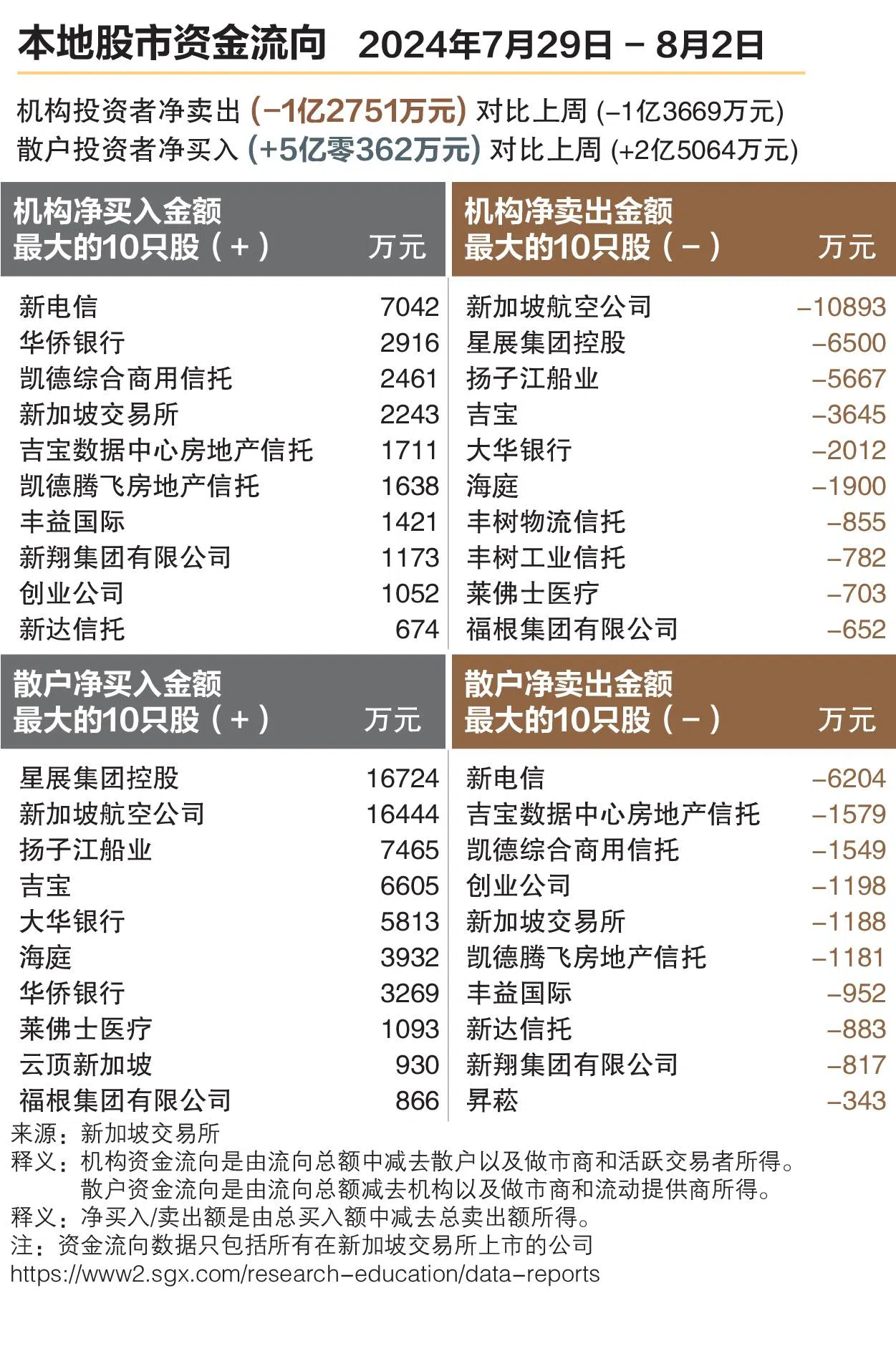 市场担心美国经济陷入衰退,加上利差交易平仓,星期一(8月5日)的亚太股市陷入恐慌性抛售而全线重挫。新加坡海峡时报指数闭市下跌4.07%或137.78点,收报3243.67点。