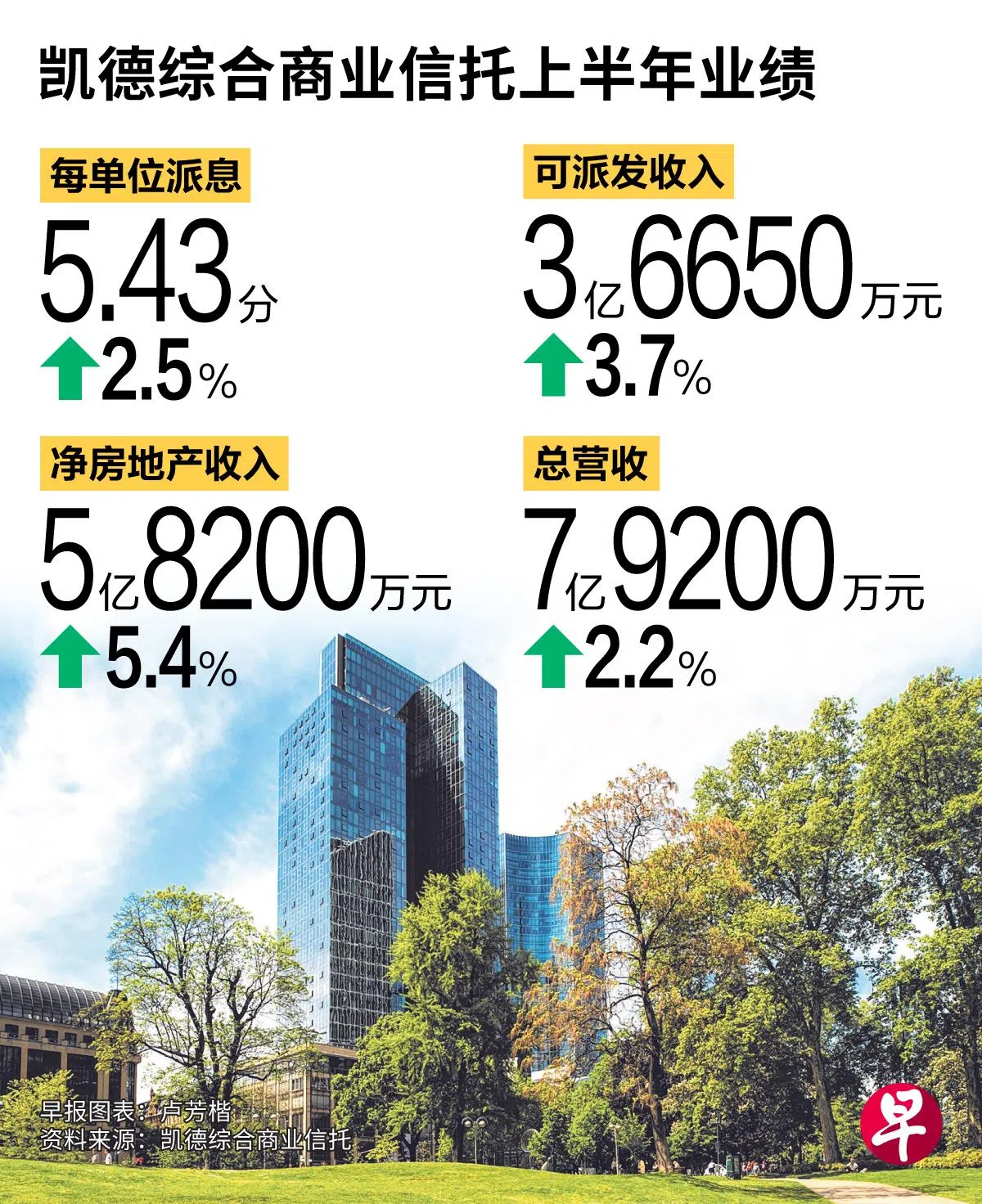信托每单位派息(DPU)同比增加2.5%,至5.43分,派息日为9月26日。