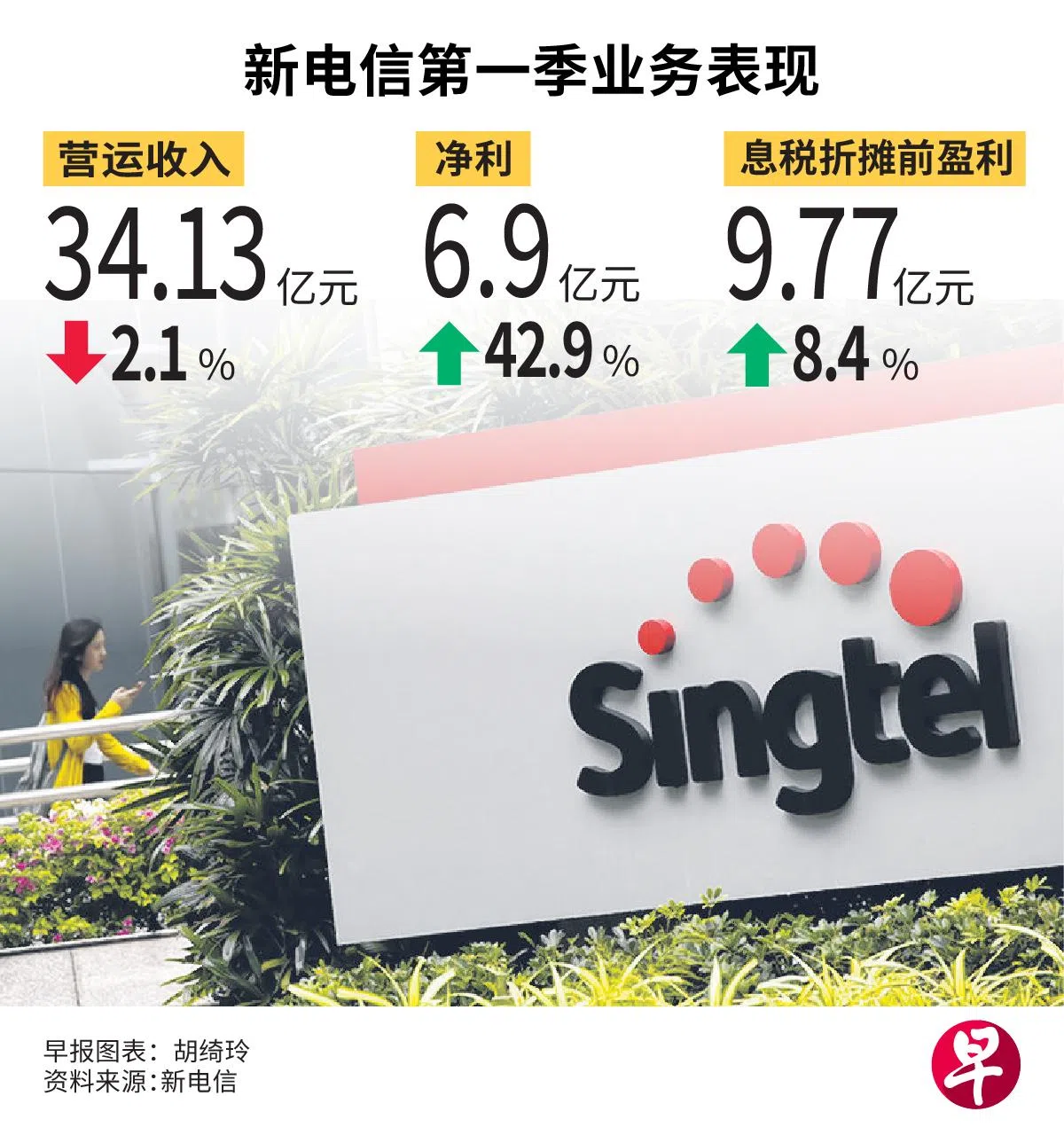 在净特殊收益的提振下,新电信(Singtel)首季净利同比大涨42.9%至6亿9000万元。