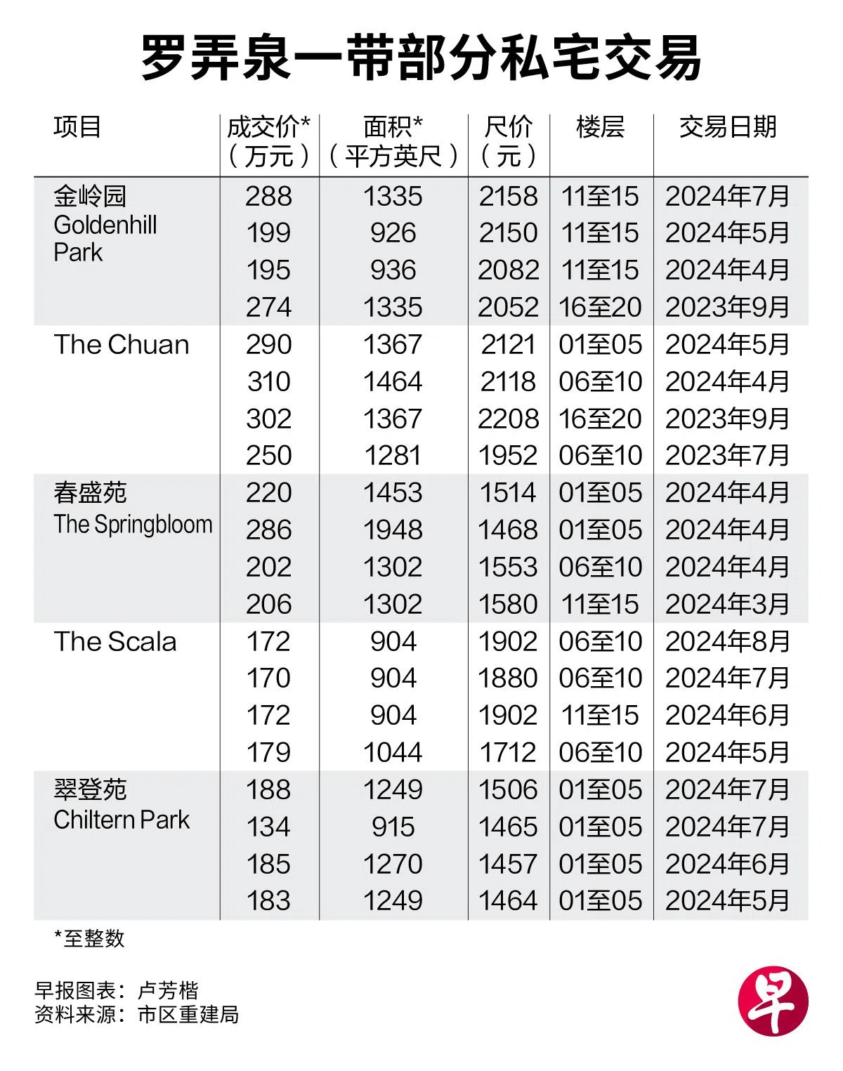 根据合登集团(Huttons)的数据,2022年以来,罗弄泉地铁站周边非有地私宅的价格增幅介于7.4%至21.2%。