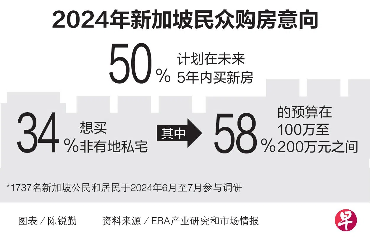 近八成新加坡居民对当下住房条件满意,但仍有近七成计划买新房,想买非有地私宅的占34%。